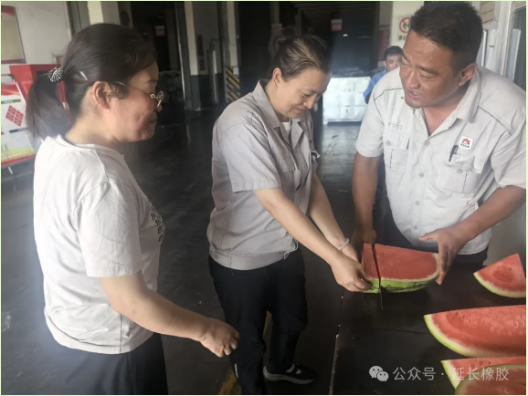 点击量:311近日,陕西地区持续高温,户外温度直逼 40℃。在这样的闷热天气中,延长橡胶公司的生产一线依旧呈现出一片繁忙的景象。原材料库的工作人员们始终坚守在库区的各个岗位上,全力保障全钢、半钢轮胎的生产供应,采供部更是针对性地开展了一系列 “送清凉” 活动,为一线人员注入夏日里的清凉动力。